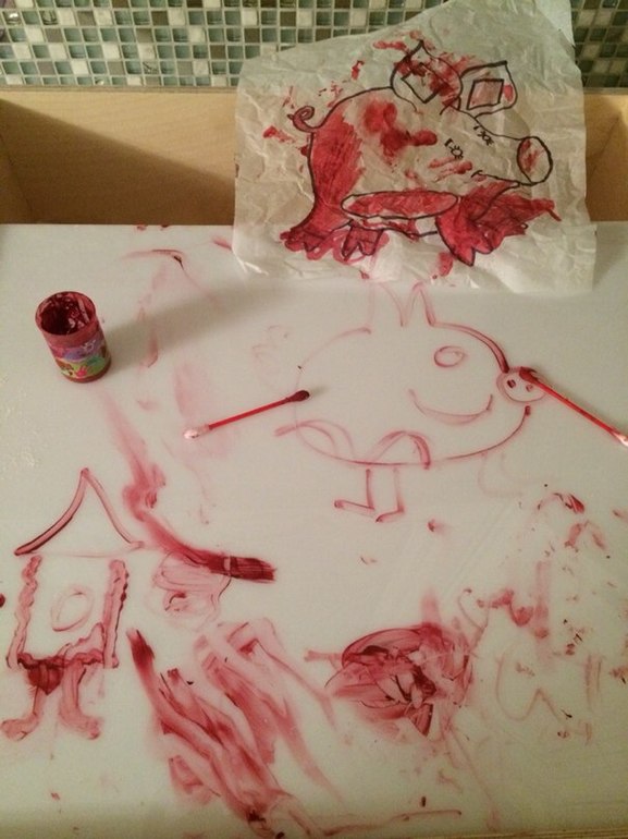 и интерес потерян! Ни уговоры что завтра мы все перенесём на окно, ни раскрашивание губкой, ни пальчиками...нет и всё(((