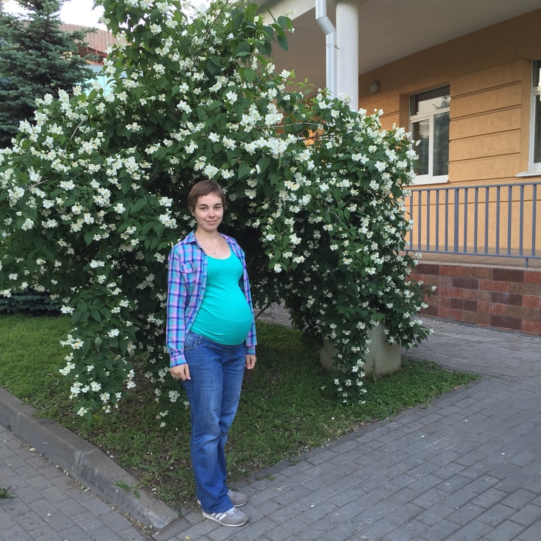 Малыш шевелится хорошо, регулярно. Остаётся головой вниз, хотя и вертится с боку на бок частенько, так что я всё время боюсь, что он перевернётся. Часто пытается запихнуть ноги и попу мне под рёбра, наверное пока не понял, что на выход ему в другую сторону :)