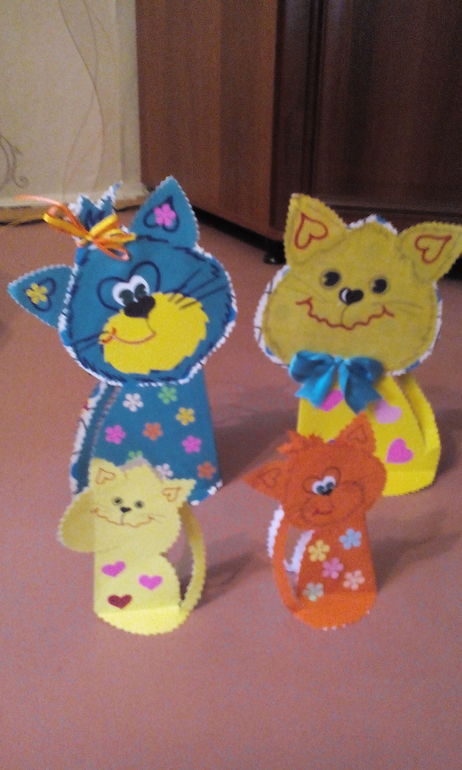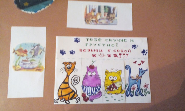Осталась с прошлого года эта кошачья семейка.Играли весь день,придумали ,,цельную страну Котилию",был герб(от руки,карандашами),из конструктора дома,дороги,столовая,школы-сады и т.д.,всех игрушечных котов собрали-жители(к сожалению-нет домашнего,был бы однозначно Правителем).Коты из сердечек,как и мышка.На А4 из ин-та идею о позитиве на весь день взяла(отрывная штука,типа объявлений),но котов искала весёлых и разных,сделала 2 штуки на пробу-пригодились!Потом ещё три дорисовала,все в ход шли(отрывали даже друзья-не жалко!) Задания рядом для верноподданных-,,Составить по картинке интересную историю!"(медаль,,Лучший выдумщик-рассказчик").Мышка-шалунишка потом появилась,играли в догонялки(,,кошки-мышки")Котилия просуществовала два дня!..Нам понравилось!