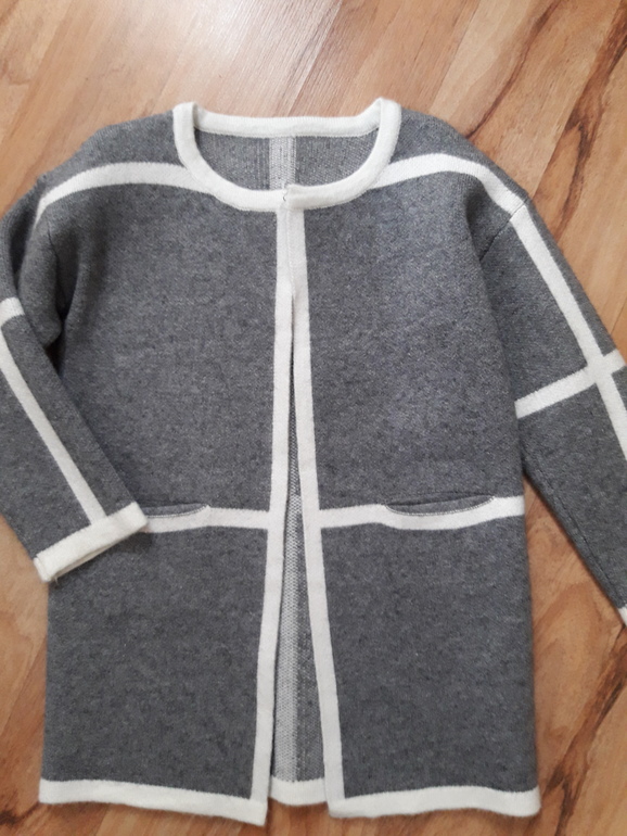 1. Кардиган на 5-6 лет. Новый. Без бирок. Плотная вязка. Теплый. Можно носить как курточку. Без застежки. Сверху застегивается на одну петельку. 700 руб.
