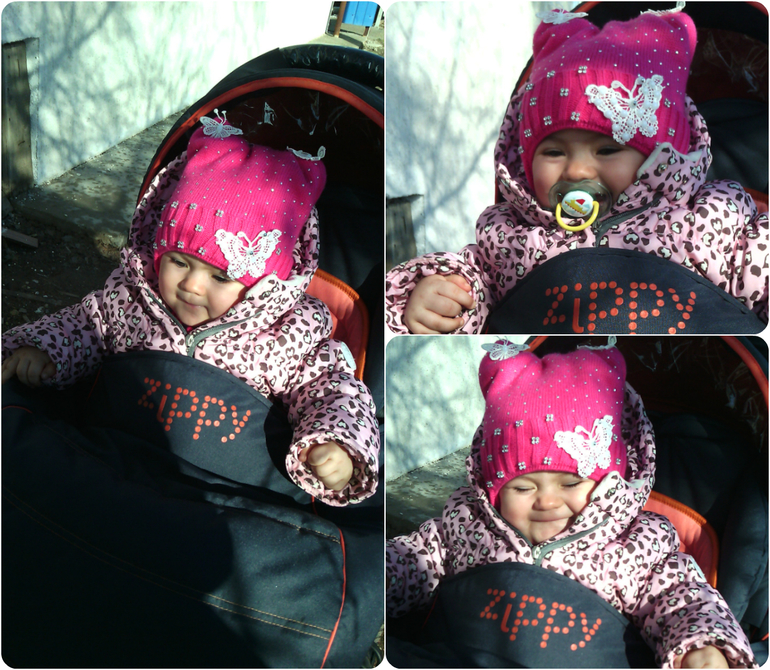 Сегодня нам 10 месяцев, иногда не верю в это. Кажется что моя девочка только вчера родилась, а уже ползает везде, даже там где не надо, разбирает комод, лезет к телевизору, короче делает все что нельзя. Познает мир. Хорошо что на улице уже потеплело, одевать ее стало намного легче, даже без истерик. Из за нашего раздражения в паховых складках нам совсем запретили подгузники и уже 3 недели мы ими не пользуемся, чувствую себя мега героем. Кушаем супчики, различные пюрешечки, творог, йогурт, фрукты, печенки и особенно любим батон. Пробовала дать кефир - не захотела его пить. У нас 8 зубов, норма до года выполнена. Начала иногда стоять сама без опоры, но боится. Не ходим еще, надеюсь скоро побежим. Очень сильно люблю свою крошечку.