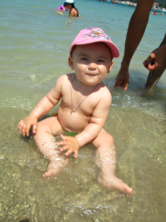 Сразу после свадьбы мы отправились на море. Ехали на машине, все прошло почти без капризов(не больше чем дома). Ехали в Анапу, приехали, посмотрели ужасно грязный пляж и зеленую воду и уехали в Кабардинку(Геленжик), вот там просто чудесно, везде чистенько и красиво. Нам очень понравилось. Ну и там первый раз доченька купалась, столько эмоций не рассказать словами. Из воды уходила только с рёвом. Всячески тянула нас обратно в воду. Еще доча обгорела, бедненькая моя, сейчас кожа слазиет. Так что хорошенечко мажьте деток кремом от загара. Уезжать не хотелось. Обязательно вернусь туда в следующем году. Ну и фоточки...