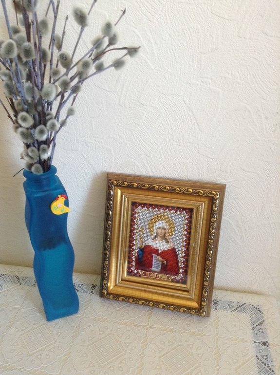 Именная икона Татьяна, полностью из бисера. оформлена в двойной багет, размер с багетом 18,5 х 16 см.