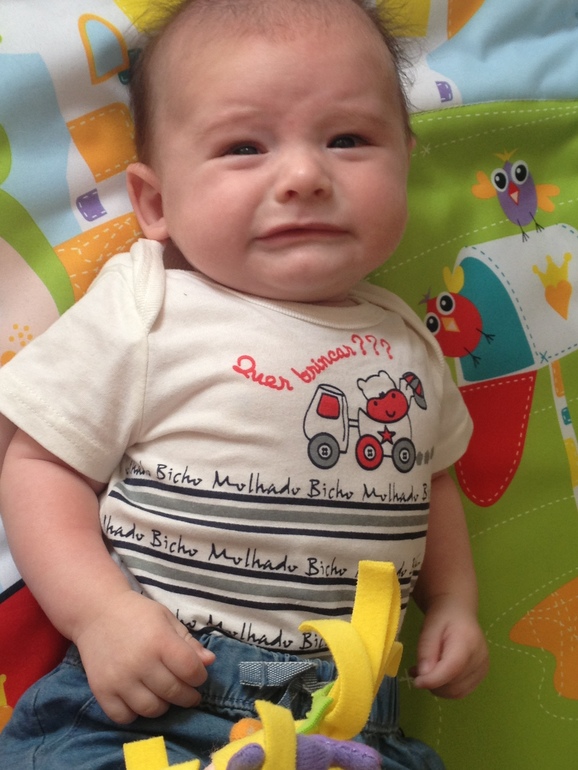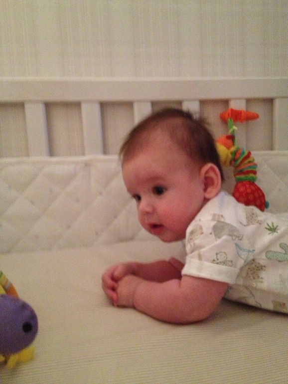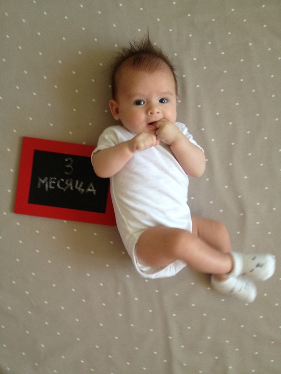 Начиная с третьего месяца развитие пошло просто семимильными шагами. Появилось много новых звуков. Такие трели выводит, что только держись! Как-то очень быстро начал переворачиваться на животик. В первый день таких переворотов не мог вытащить из-под себя руку и истошно кричал. На второй день уже справился с рукой, но добавилась новая проблема - неумение переворачиваться назад на спину. Зато буквально за пару дней научился хорошо стоять на локтях и высоко держать головку.