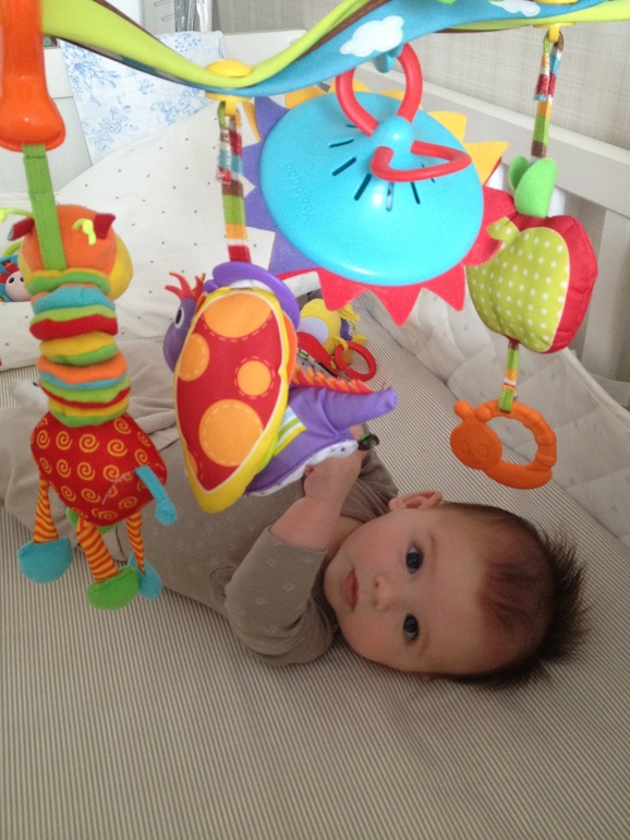 Теперь весь день переворачивается на спину, несколько минут кряхтит и дрыгает ручками-ножками, а потом начинает кричать. Не совсем, правда, понятно, что именно он в итоге хочет. Перевернешь назад на спину - ор продолжается. Не перевернешь - тоже недоволен. Приходится брать на ручки. Это срабатывает всегда))
