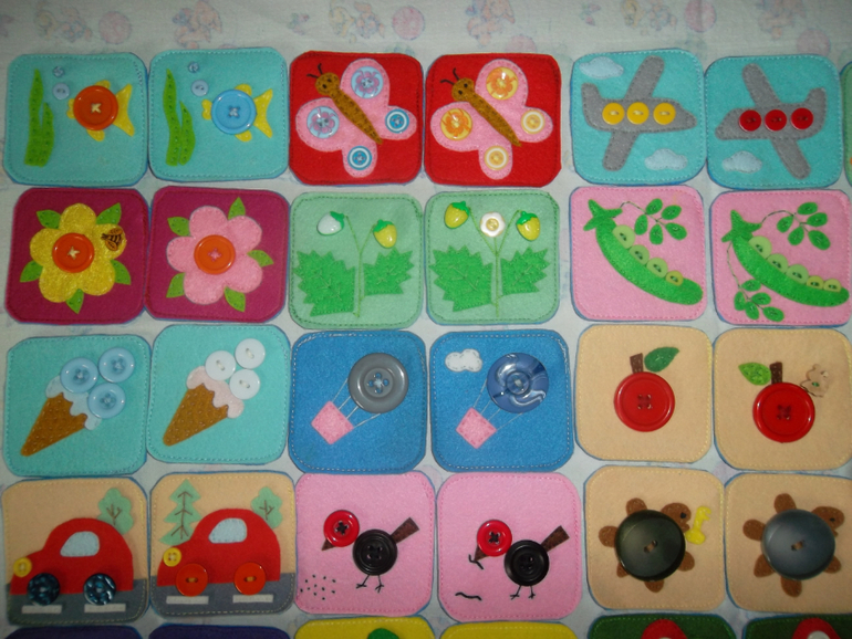 Вот такие карточки для игры в мемори и не только. Идея взята с сайта шилопоп. Сшились на одном дыхании. Очень понравилось. Сделала 24 пары, жаль поздно совместный пошив увидела.