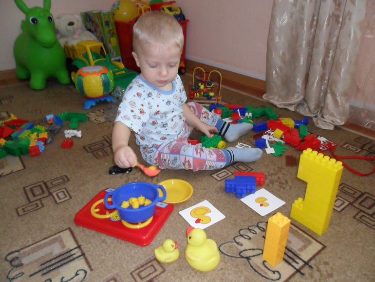 Итог дня Рома сегодня прямо таки делал сам башенки из конструктора, причем и из лего, и из обычного Крохи. Уток тоже теперь знает отлично, закреплены большой маленький, желтый цвет.