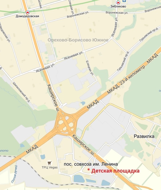Находится она в пос. Совхоза им. Ленина на пересечении МКАДа и Каширского шоссе. Вот здесь: