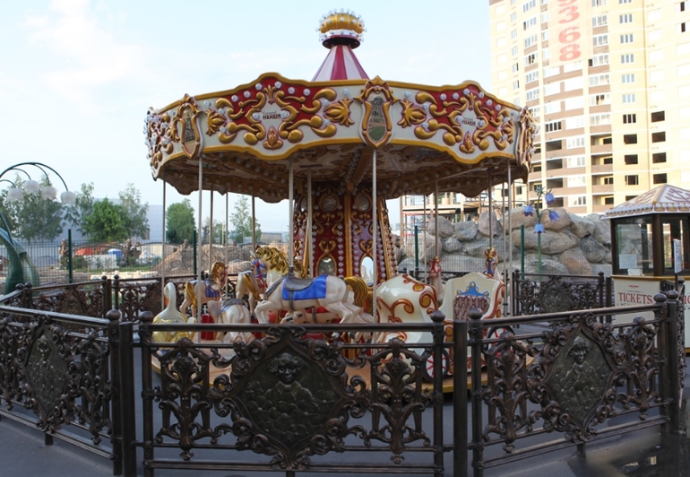 Через дорогу от площадки есть пруд с катанием на лодочках в летнее время. Еще через дорогу находится детский сад «Замок детства»