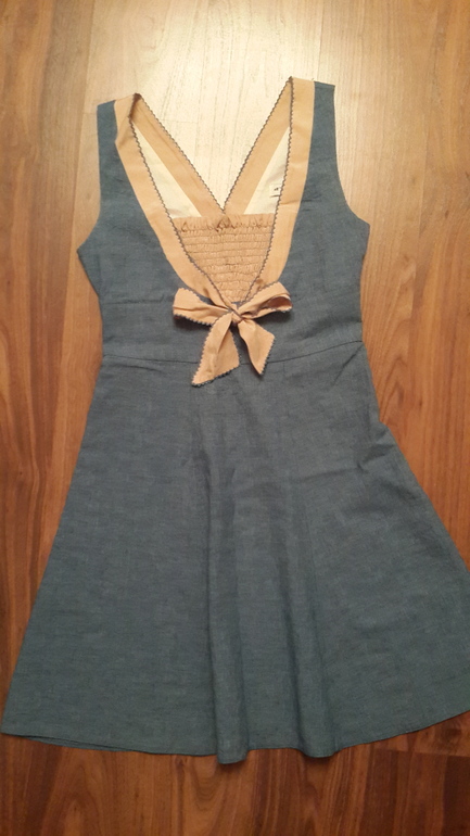 Новое симпатичное платье 42-44. Заказывала из-за границы, но мне оказалось коротковато. Длина спереди от плеча 85 см, сзади - 91 см, ОГ - 47.5 см. 700 экв.