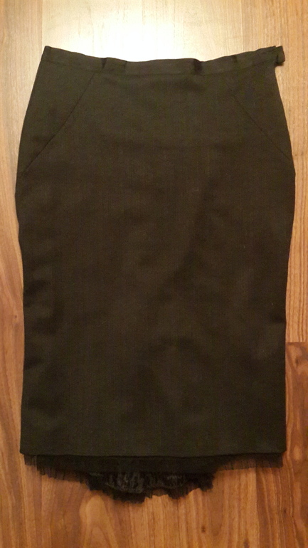 Очень красивая юбочка-карандаш, р. 42. Нижняя подкладка сзади чуть выглядывает (такой покрой), смотрится очень сексуально. Юбочка как новая: одела 2 раза на конференции, потом поправилась (( 1000 экв.
