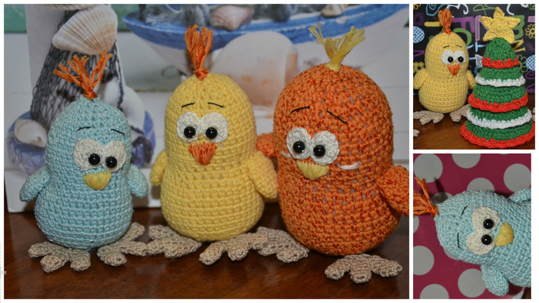 ...у каждого своя, а вот у нас такие:)))) Мастер-класс из интернета, остатки пряжи, крючок №2. Большой птиц 9.5см., маленький 8.5см. И ёлочка до кучи связалась.