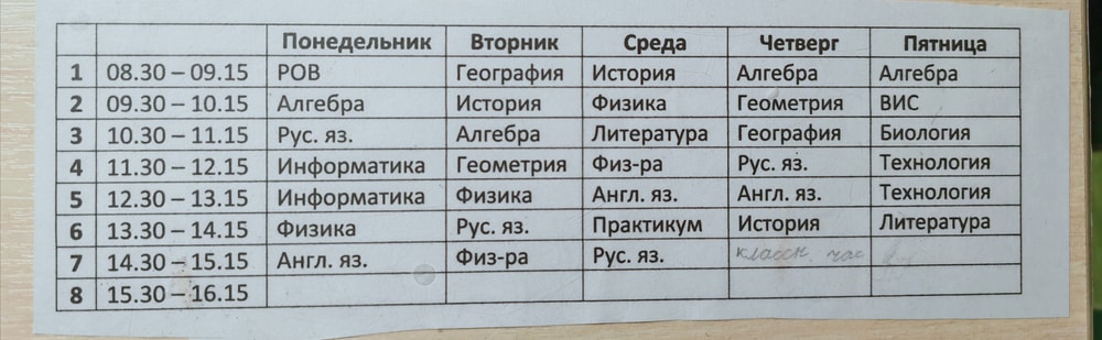 Вот бы моему такое расписание. Учителей нет, алгебры нет, физики нет, русский 2 раза в неделю оставили. В других школах похожая ситуация. Ставропольский край.