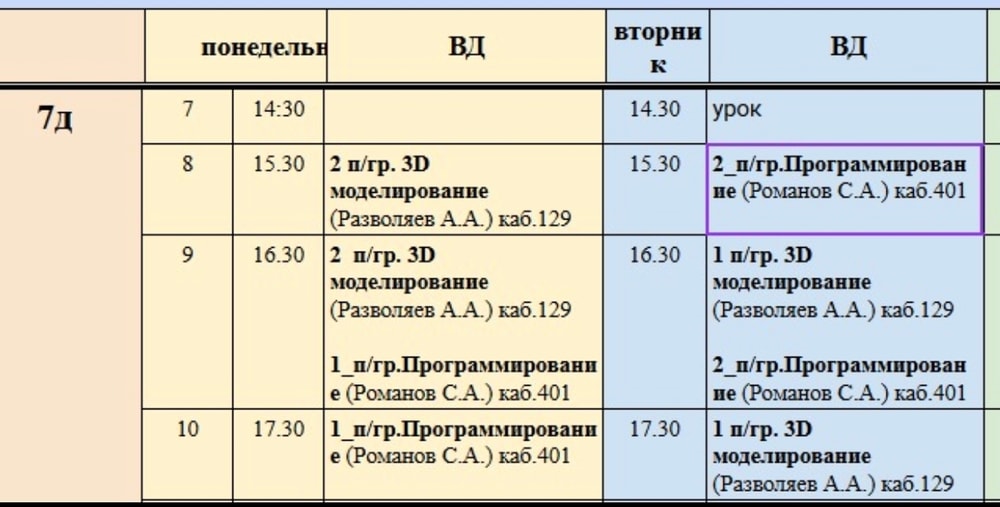 Maria, я спросила, руководитель направления айти мне предложила ходить с другим айти классом в другой день на внеурочку, если это удобнее, у них вот такое расписание