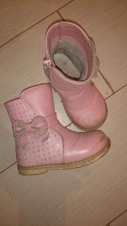 РозоВые ботинки с апликацией - 20 р-р по стельке 12.5 см. Кожа на коже +текстиль Только в коляске, - 1000 р.
