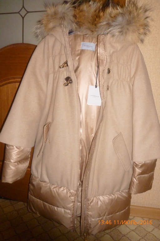 Девочки продаю оригинальный новый пуховик (бирки все на месте) с капюшоном, съемная опушка из шикарного натурального меха енота. Оригинал, 75% шерсть ламы, 25% полиамид. Размер от 38 до 44. Полуобхваты груди -46, бедер -54, длины: изделия -82, рукава -62, плечевого шва -7. Был куплен за 38500 перед беременностью, поносить не успела. Торг.