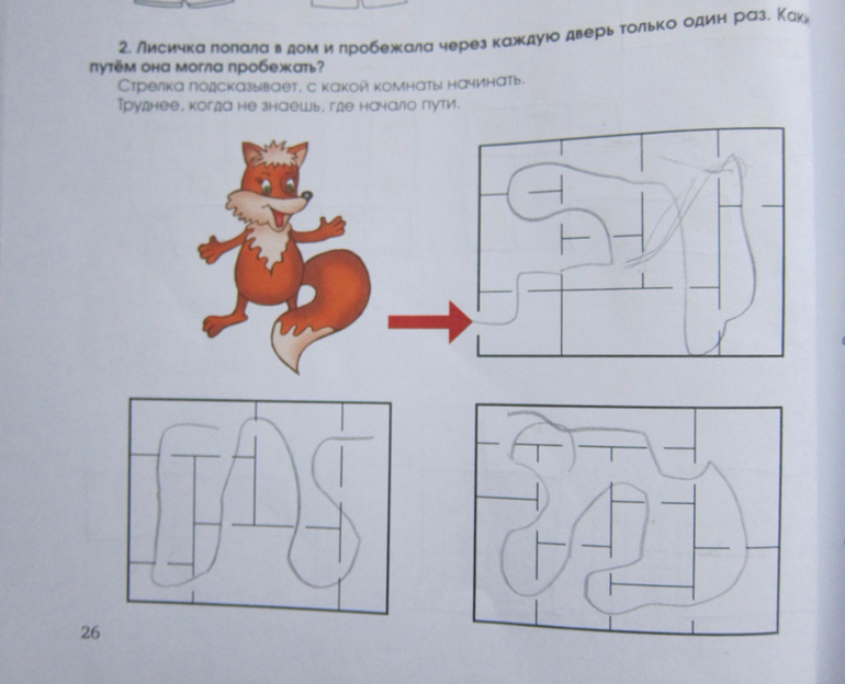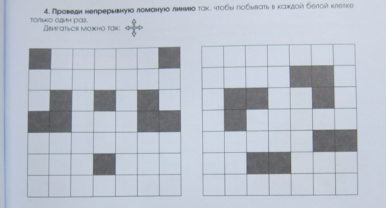 Второе понравившееся задание - обвести фигуру, не отрывая карандаша от бумаги. Есть над чем подумать не только ребенку, но и маме))