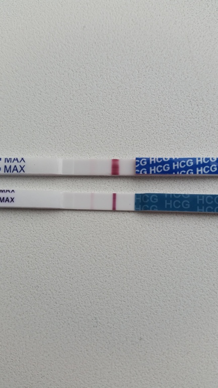 Сегодня утром (10дпо) я сделала второй эвик. В обед - третий. Всё повторилось по той же схеме...проявилось бледное, но четкое и ровное НЕЧТО в контрольной зоне через 7-10 минут, после того как пропало розовое окрашивание всей полоски и фон стал белым. На работе все глаза сломала, весь день её разглядывая.