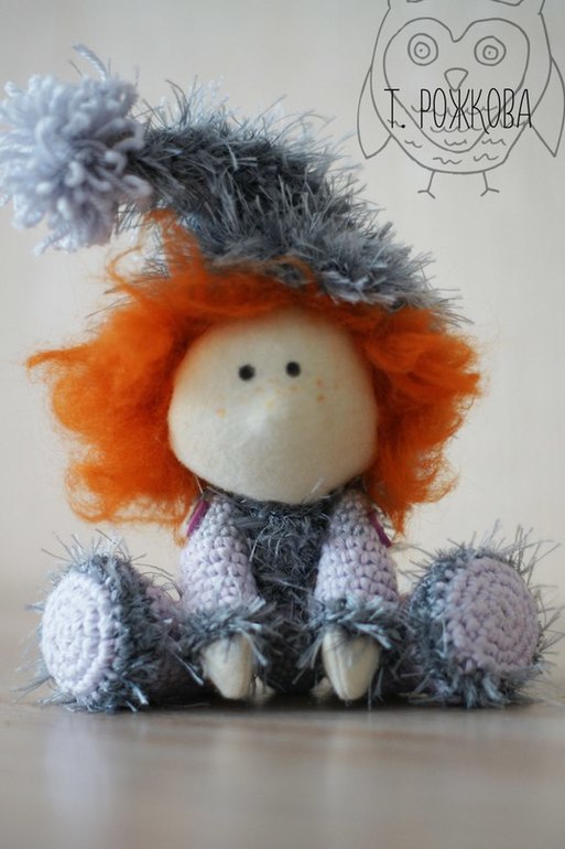 Выполнен из трикотажа, набит синтепоном, шерсть сделана из шерсти.