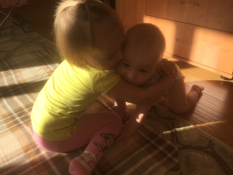 Раскладываю выстиранное белье, идёт Аня и ноет :"больььнаааа!" Что случилось?! "Я наступила на руку Данилке и мне ногу болььььнааа"