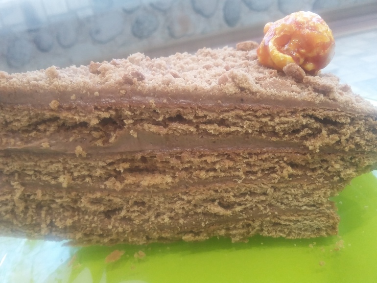 Обрезки теста я тоже испекла, раскрошила и посыпала торт сверху: