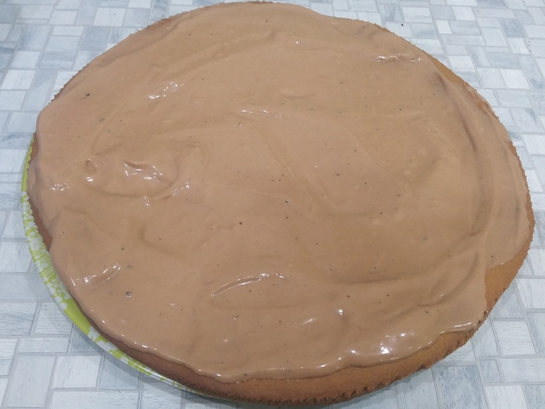 Я им смазываю еще теплые коржи, сразу собирая торт на тарелке: