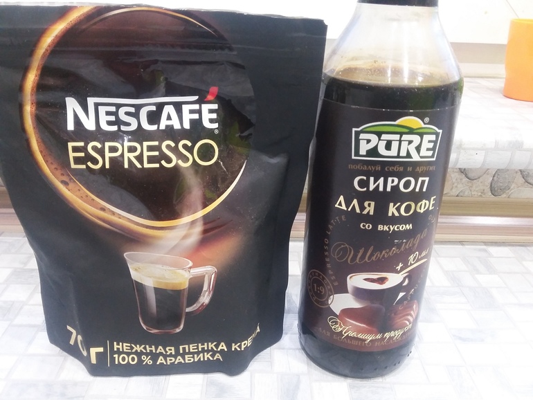 Дальше нам понадобится 3 ст.л. сиропа. В идеале - кофейного. У меня в этот раз шоколадный: