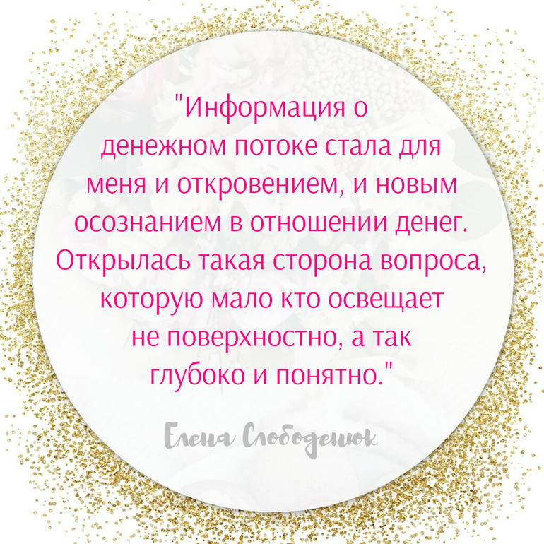 Информация о денежном потоке стала для меня и откровением, и новым осознанием в отношении денег. Открылась такая сторона вопроса, которую мало кто освещает не поверхностно, а так глубоко и понятно.