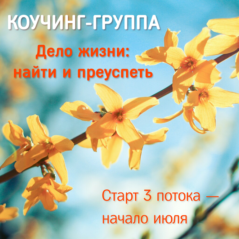 В начале июля у меня стартует 3 поток коучинг-группы "Дело Жизни: найти и преуспеть".