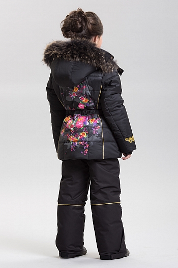 Брюки -на съемных бретелях, регулируемых по длине и ширине.Внутренняя часть брюк на шелковой подкладке. Верхняя часть брюкзастегивается на молнию. Для лучшего прилегания по спинкепроходит широкая резинка в области талии. Спереди талиярегулируется при помощи кнопок. Низ брюк с отворотнойманжетой, регулируемой по длине и ширине и со снегозащитноймуфтой