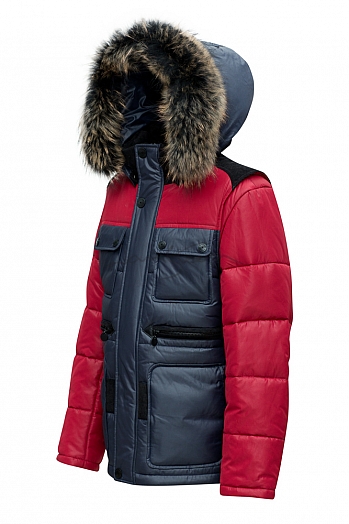 Для утепления модель имеет вшитую жилетку с трикотажнымворотником. Центральная застежка-молния утепленаветрозащитной планкой на кнопках. Воротник стойка. Рукаввтачной, регулируемый по длине отворотными манжетами свнутренними ветрозащитными трикотажными напульсниками. Нанижней части переда боковые прорезные карманы на молнии, вверхней части прорезной горизонтальный карман на молнии.Капюшон съемный на молнии. В нижней части модели имеетсякулиса для регулирования объема. Куртка имеет датчик контролятемпературы.