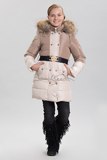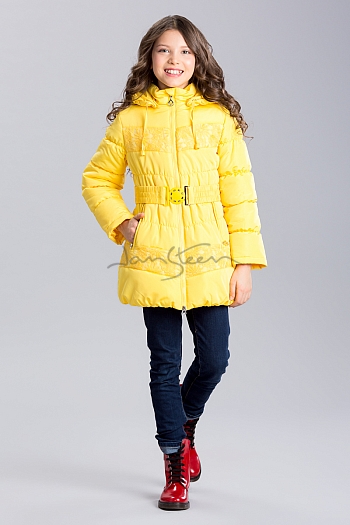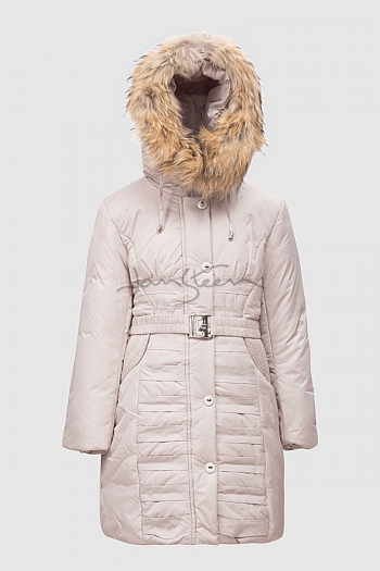 Пальто на искусственном пуху. Центральная застежка на тесьму молнию с внутренней ветрозащитной планкой.Рукав втачной,с внутренней трикотажными напульсниками. Пальто полуприталенного силуэта.На нижней части переда боковые прорезные карманы на кнопке.Капюшон съемный на молнии с регулируемой кулисой.