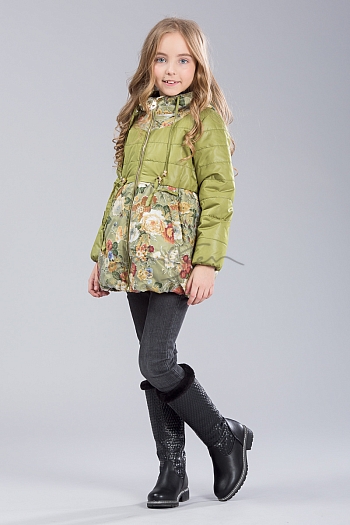 Модель полуприлегающего силуэта на холлофайбере. Застежка на открытую тесьму-молнию. Подкладка флис. Воротник стойка. Капюшон съёмный на кнопках. Рукав втачной, регулируемый по длине. Внутренний трикотажный манжет. На нижней части переда врезные карманы на молнии.