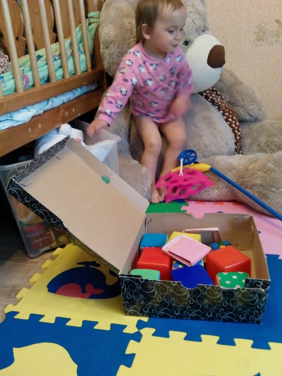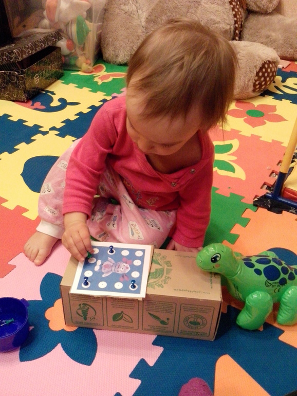 В целом квадратный день прошел менее весело, чем круглый. Очень Алисе понравилось играть с силовыми кнопками и клеить наклейки.