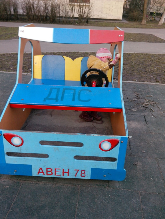 Также мы играли в песочнице с машинками и искали машинки на игровой площадке.