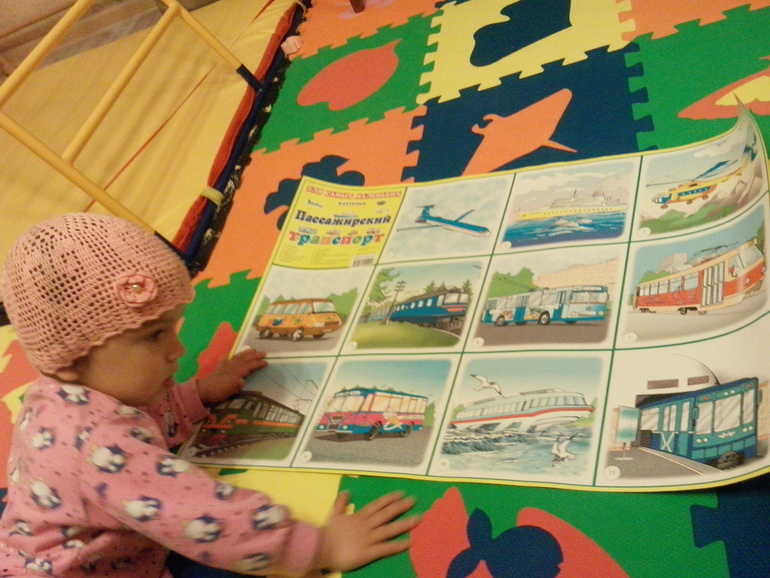 В течение дня мы рассматривали наш тематический плакат и искали транспорт в книжках.