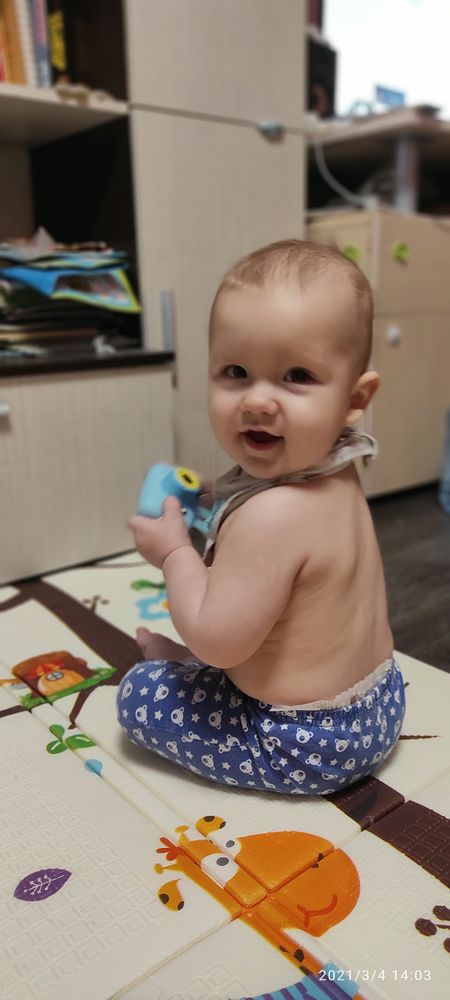 ГеоргийГошеньке уже 8.5 месяцев. Достижения - уже есть 8 зубов, отлично ползает, умеет сесть из положения на животе. Преодолевает небольшую ступеньку при входе в комнату. Любит стучать игрушками по всему или хлопать ладошкой по разным поверхностям. Лепечет на своем когда вокруг все говорят. Не любит оставаться в одиночестве. Обязательно надо уделять внимание м находится в пределах досягаемости. К сожалению, тоже аллергик, как и Рита. Пока не поняла точно на что сыпь. Даю только безопасные овощи и мясо с рыбкой. На фрукты сыпь, и на печенье тоже((( Каши пока только безмолочные даю. С Ритой прям любовь. Дружат и играют)