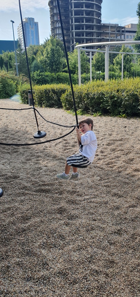 Следующим днем у нас в планах был парк Горького. Я в восторге от него. Поскольку у нас разница во времени 2 часа, в парке мы были с самого утра, когда никого еще не было и вся площадка была наша🤣