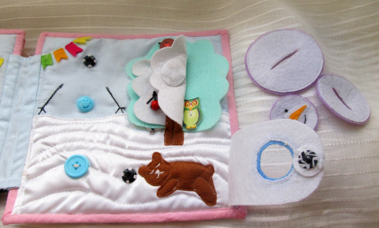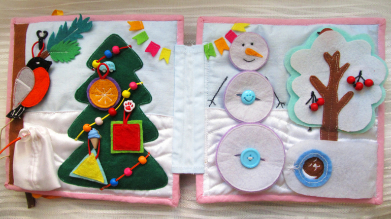 На полтора годика сшила дочке книжку. Планировала "Времена года", но успела только осень и зиму. Как раз была осень и наступала зима, так что было актуально. А весну и лето похоже дошью к весне