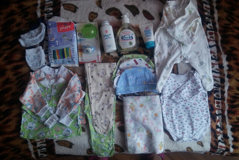 Вот то что уже упаковано:послеродовые прокладки,одноразовые пелёнки 60*90,сорочка для кормления с халатом,бюстгалтер для кормления,макси прокладки олвейз 36 см без сеточки,одноразовые трусы-шортики,прокладки для груди,влажные салфетки без запаха,одноразовая бритва,носки,зубная щётка.