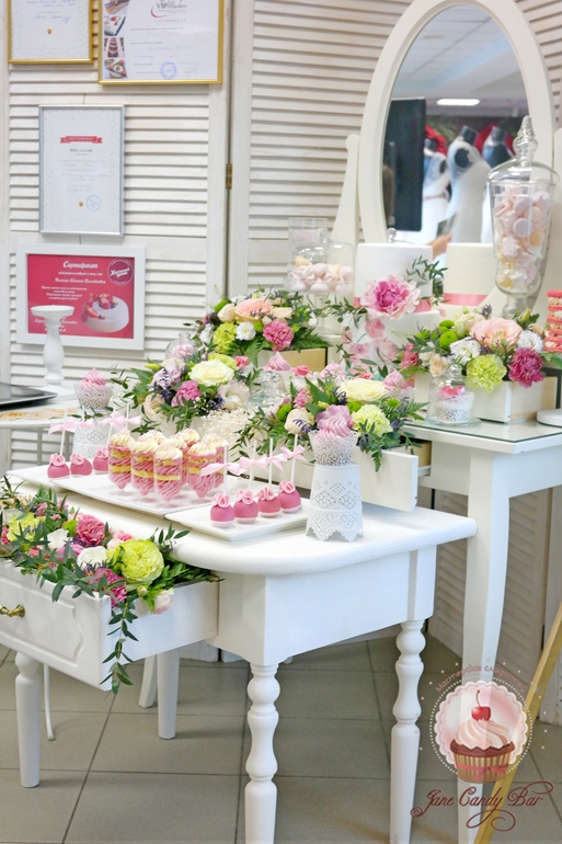 Проходила у нас в Твери в эти выходные. Было представлено много интересных проектов. Декораторы, стилисты, визажисты, шоу-программы, салоны платьев. Мы решили оформить весенне-цветочный кенди-бар и торт с модными акварельными цветами. Много фото под кат
