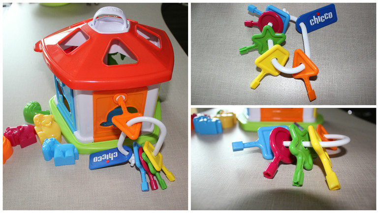 Каждый ребенок проходит свое развитие именно через сортер. Это как букварь)) Мой выбор пал именно на этот сортер «Домик с животными» Chicco, потому как это не только все компоненты в одном удобном хранилище в виде домика, но и очень многофункциональная игрушка, в этой модели представлено несколько видов сортера. Сортировщик очень яркий, все его компоненты (фигурки, ключики) представлены в сочных ярких цветах, и имеют обтекаемую форму без заостренных углов, что очень безопасно! Один сортер сверху крыши, там можно поизучать фигурки, а другой сортер на дверцах домика познакомит с животным миром. Ну а особый восторг вызывают ключики. Каждый ключик имеет свою форму цветовую гамму для того, чтобы определить какую дверцу нужно открыть. За счет удобной ручки ее с легкостью можно переносить. А благодаря общей фантазии можно придумывать множество игр с этим домиком, эта игрушка позволит открыть новые грани, и использовать его не только как сортер. Кстати, можно его использовать как светильник, предварительно поселив в домик небольшой светящийся фонарик, нам он так освещал комнату и придал волшебство перед сном;) Так что такой домик-сортировщик не даст скучать;))