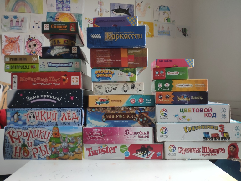 Добрый день! Буду рада советам! Вот что имеем. Первая стопка - любимые, сама их приносит, но уже все надоело. Лис и королевы крутые игры, но нужно что-то новенькое. Вторая стопка - сама приносит редко, но если я предложу, то играет. В Каркассон не по всем правилам, т.к.пока сложно. И последняя стопка - отказывается в них играть.