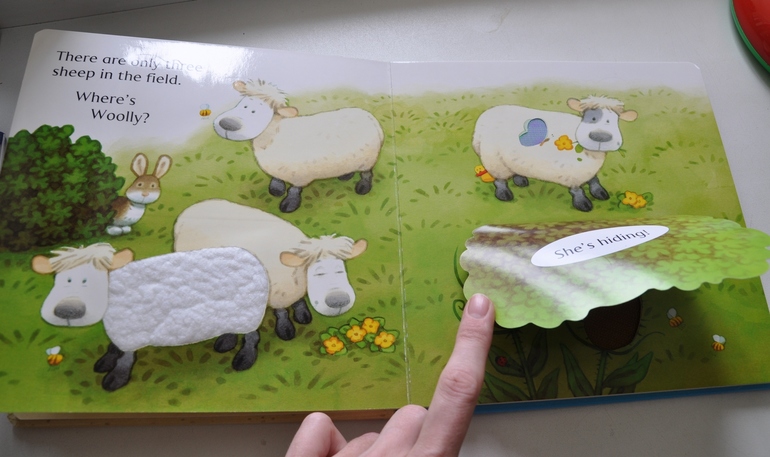 Здесь можно потрогать овечку, очень классно сделаны репьи из липучек и ищем четвертую овечку.