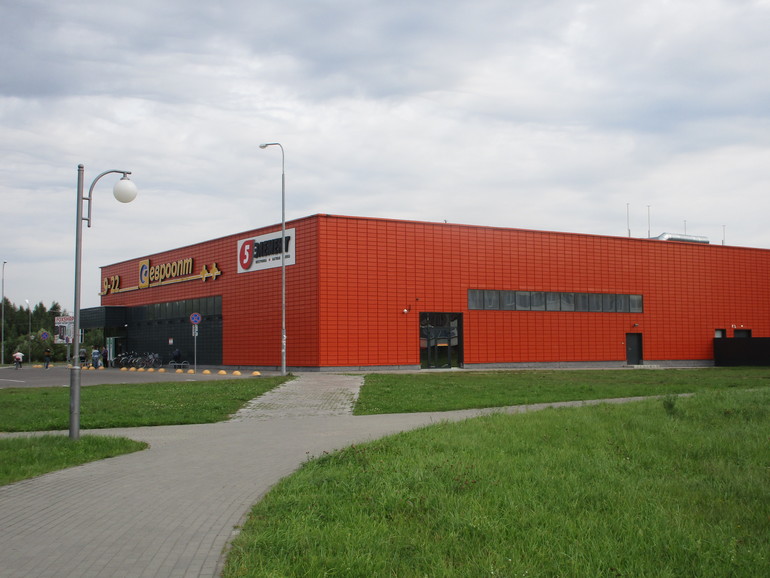 Это "Евроопт" - самый большой магазин в городе, супермаркет. По размеру и ассортименту сопоставим с нашим "Перекрестком".