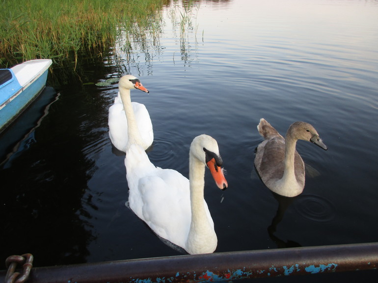 Семья лебедей проголодалась))