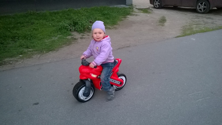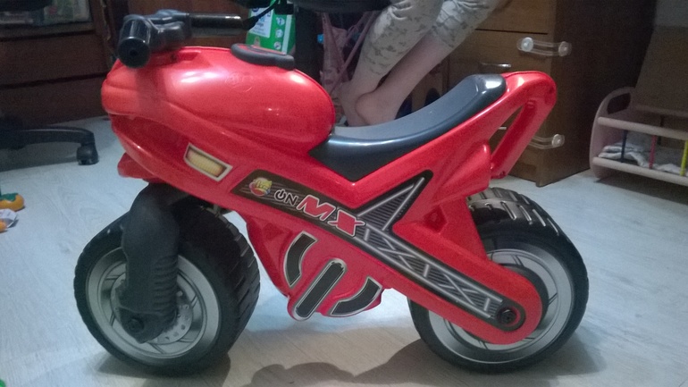 У нас такой же мотоцикл-беговел!!!! Мы и в магазин на нем гоняем, только должно быть два родителя))))