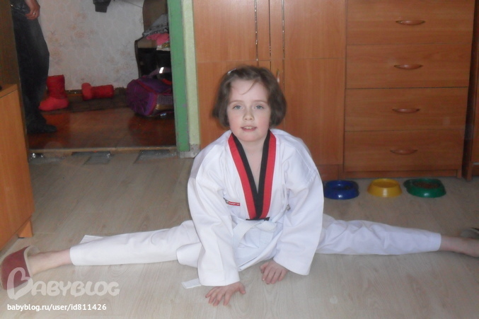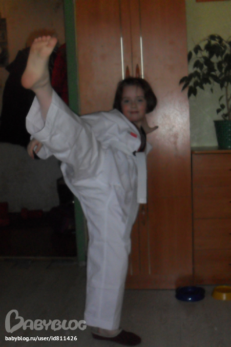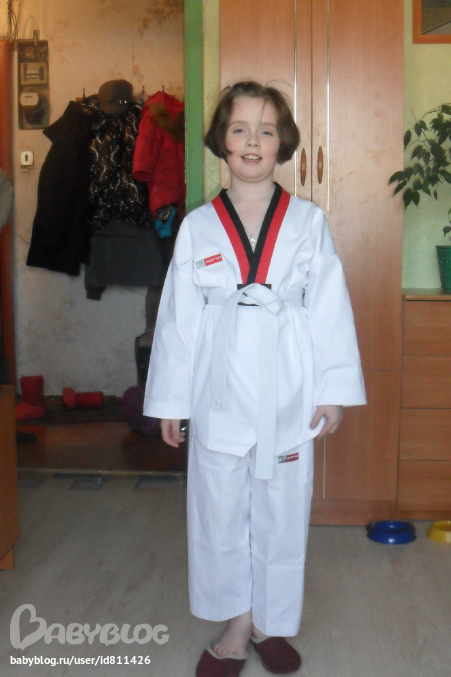 Наконец-то вчера наш супер-пупер быстрый тренер привез нам добок (так называется кимоно в тхэквондо)! Аж в январе заказывали))) Завтра бабушка нашьет на белый пояс желтую полосу, и моя зайка будет красивее и круче всех)))))) Ура-ура!!!
