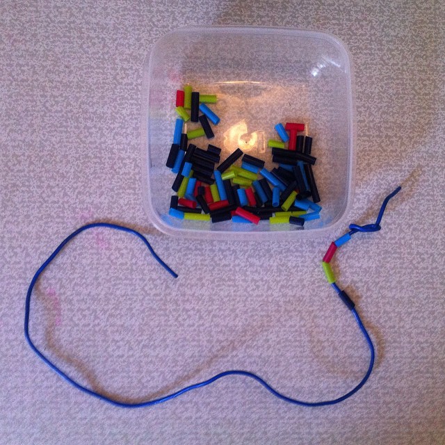 Нарезанные икеевские соломинки + кусок бельевого шнура = прекрасное пособие для мелкой моторики и сп