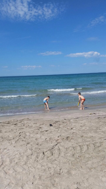 Это уже хорошая водичка, теплая, конец июня. С маской одно удовольствие! Дети наплавались, Максим так вообще как рыбка в воде был.